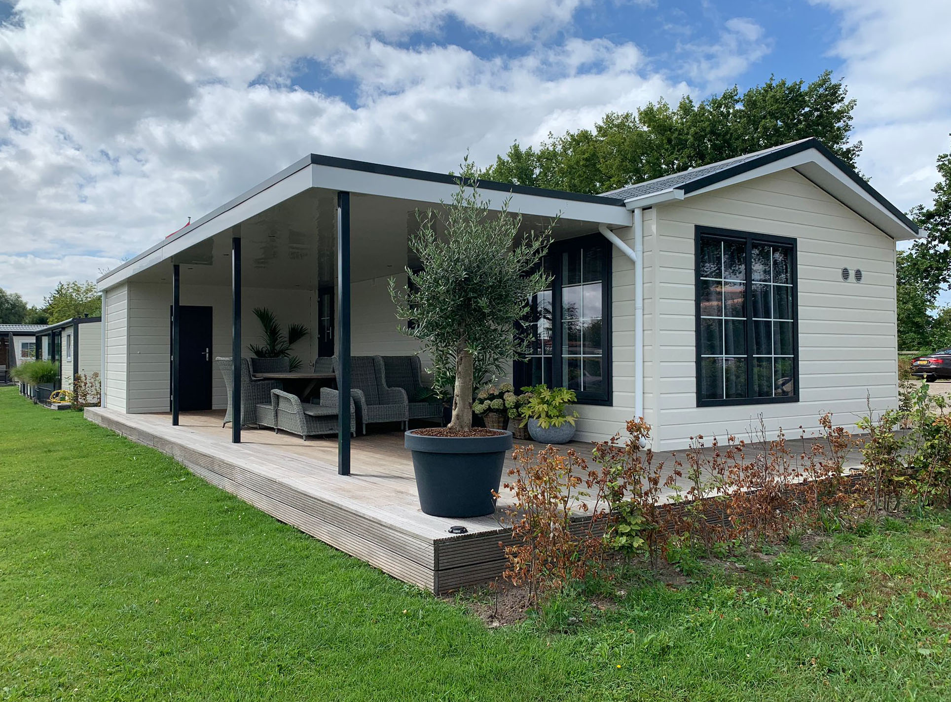 Wij werken samen met Arcabo, een toonaangevende chaletbouwer. U kunt uw chalet geheel naar wens laten plaatsen, inclusief terras, aansluiting en tuininrichting.